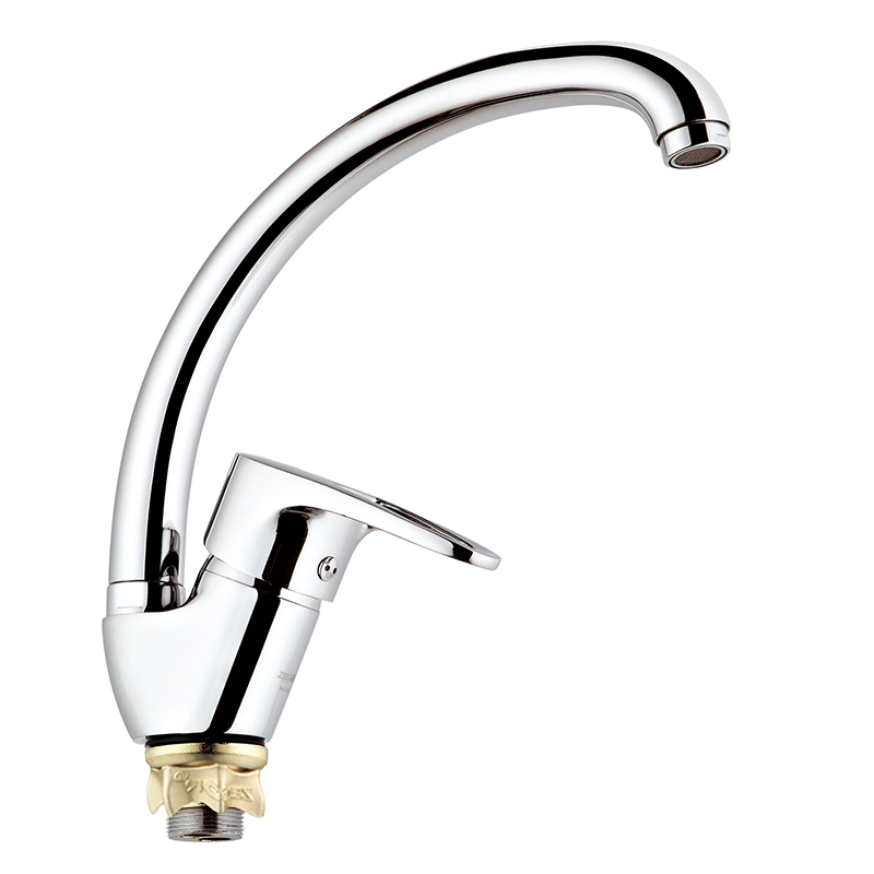 Baterie pentru bucatarie, maneta unica. Carcasa confecţionata dupa tehnologia moderna „turnare sub presiune”, ceea ce sporește semnificativ termenul de exploatare al bateriei. Se utilizeaza cartușul ceramic silentios Ø40, cu potenţial inalt, la fel aeratorul, care imbunatatește calitatea apei și reduce consumul ei.