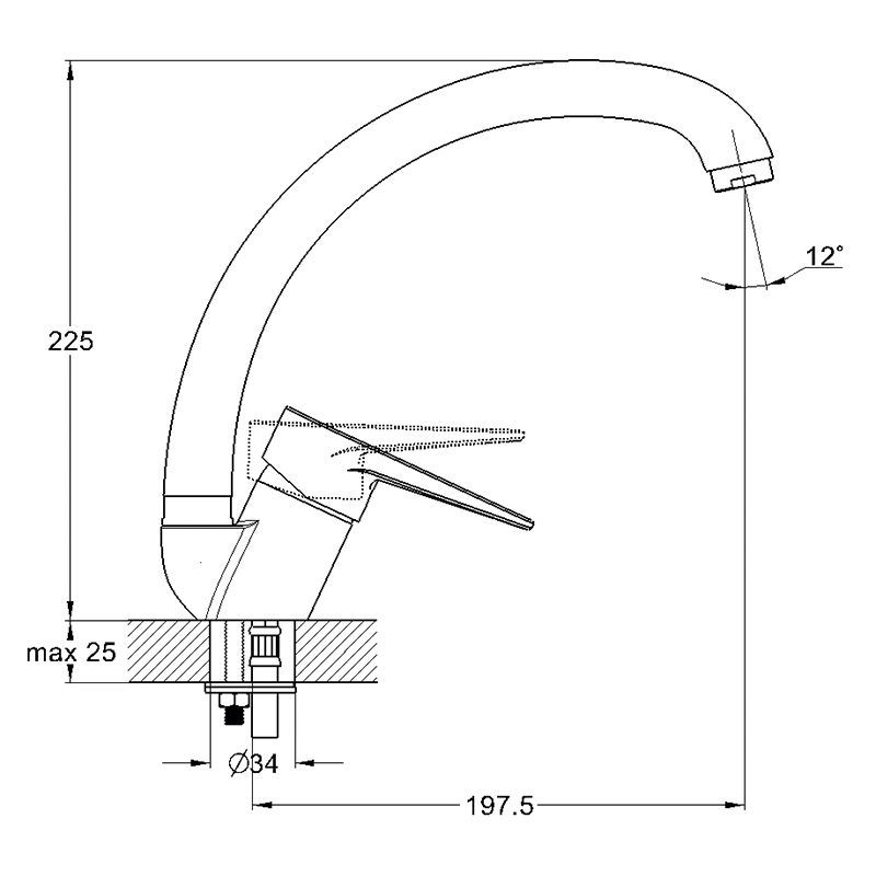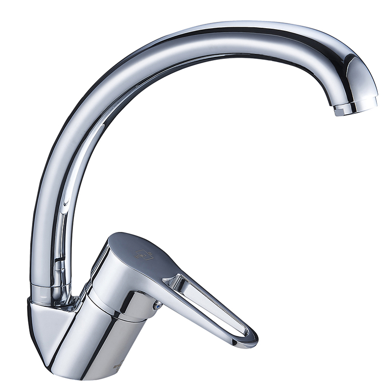 Baterie pentru bucatarie, maneta unica. Se utilizeaza cartușul ceramic silentios Ø35, cu potenţial inalt, la fel aeratorul, care imbunatatește calitatea apei și reduce consumul ei.