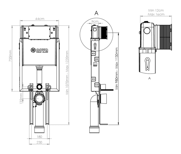 Rezervor din plastic pe cadru metalic / echipat cu armătură de închidere / instalare împreună cu un vas de toaletă stativ, lipit de perete / Aspectul este compact și îngrijit