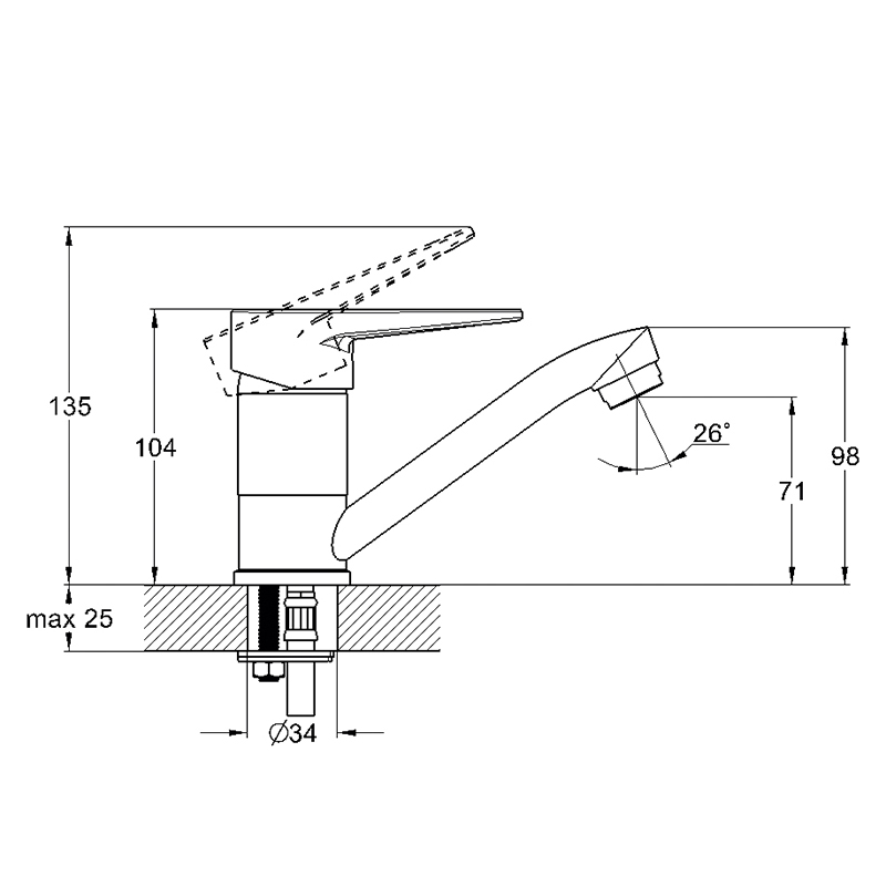 Смеситель для умывальника с коротким изливом. В смесители используется бесшумный керамический картридж Ø35, а так же аэратор смягчающий и экономящий расход воды. Крепление смесителя шпилька.