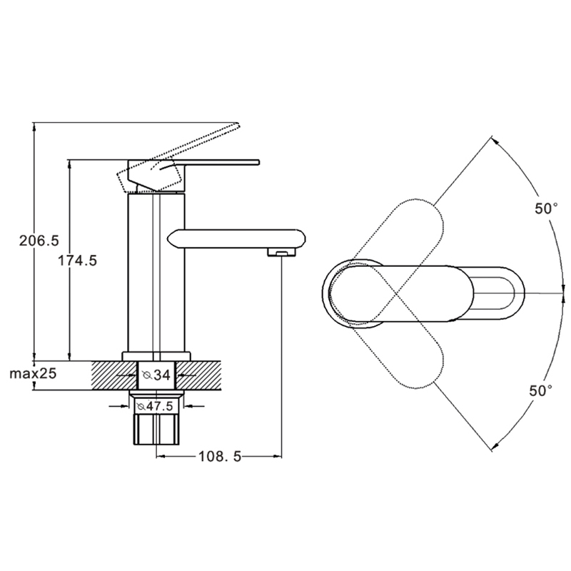 Стильный смеситель для умывальника. Корпус изготовленный по новейшей технологии технология изготовления „литьё под давлением”значительно увеличивает срок эксплуатации смесителя. Отлично сочетается в ванных стиля hi-tech