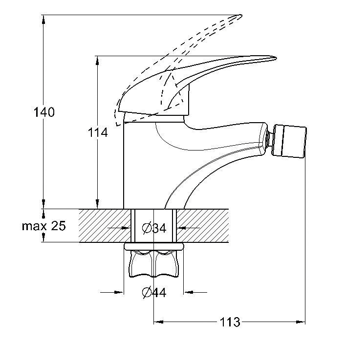 Для биде / литой корпус / керамический картридж Ø45 / крепление гайка / аэратор / подводка 40 см