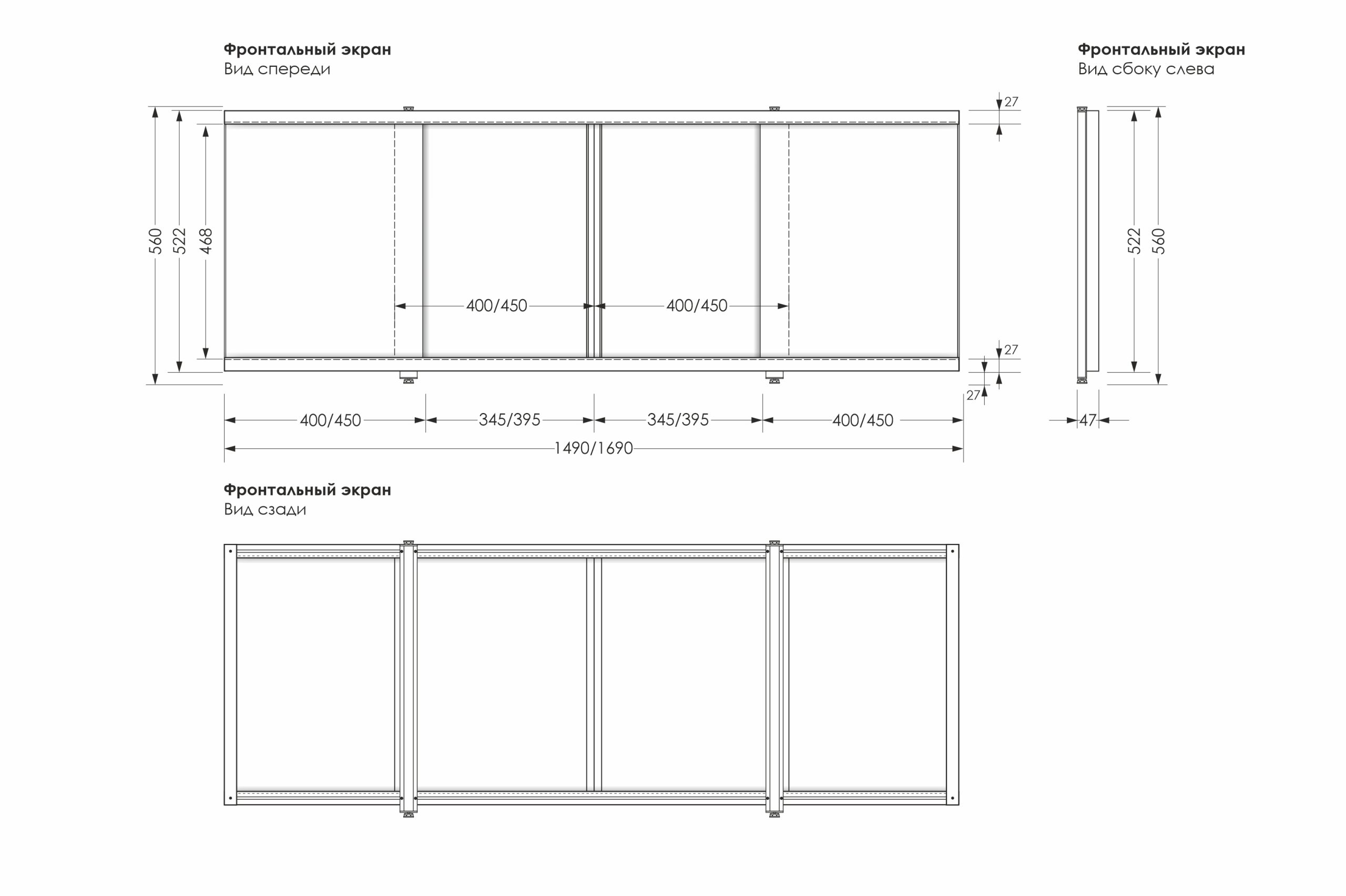 Длина, мм 1490 / Установочная высота, мм 560-600 / Рама алюминиевый профиль / Легкость монтажа