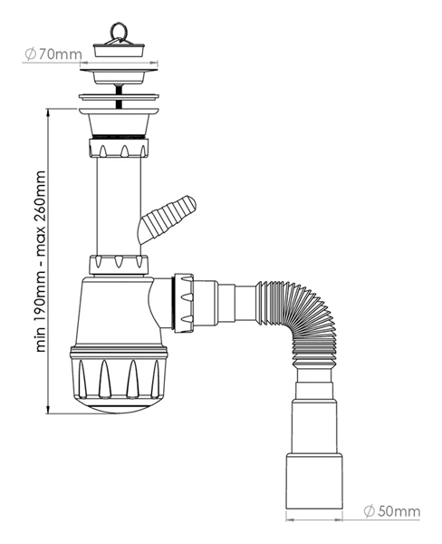 Сифон для умывальника / выход на слив от стиральной машины / большая бутылка отстойник / выход канализации Ø40/50